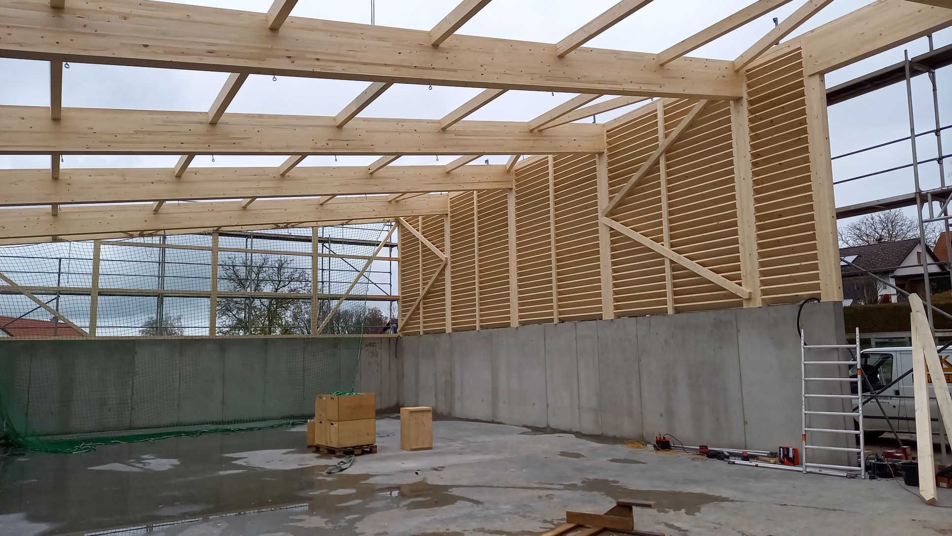 Im Heizhaus geht es ab nächster Woche mit der Installation der Heizhaushydraulik durch die Fa. Dengler weiter, bevor dann in KW 50 der Kamin eingebaut wird.