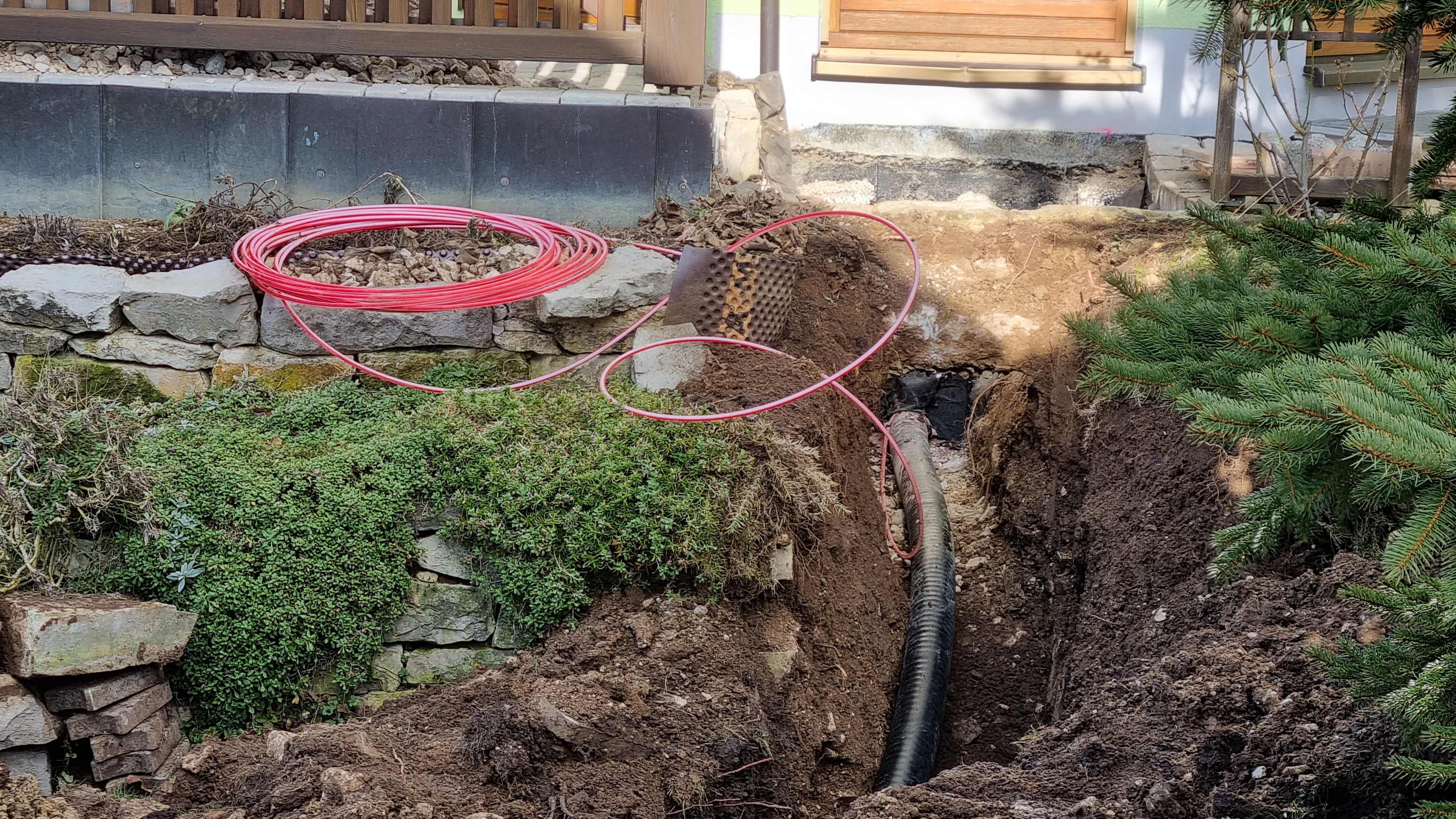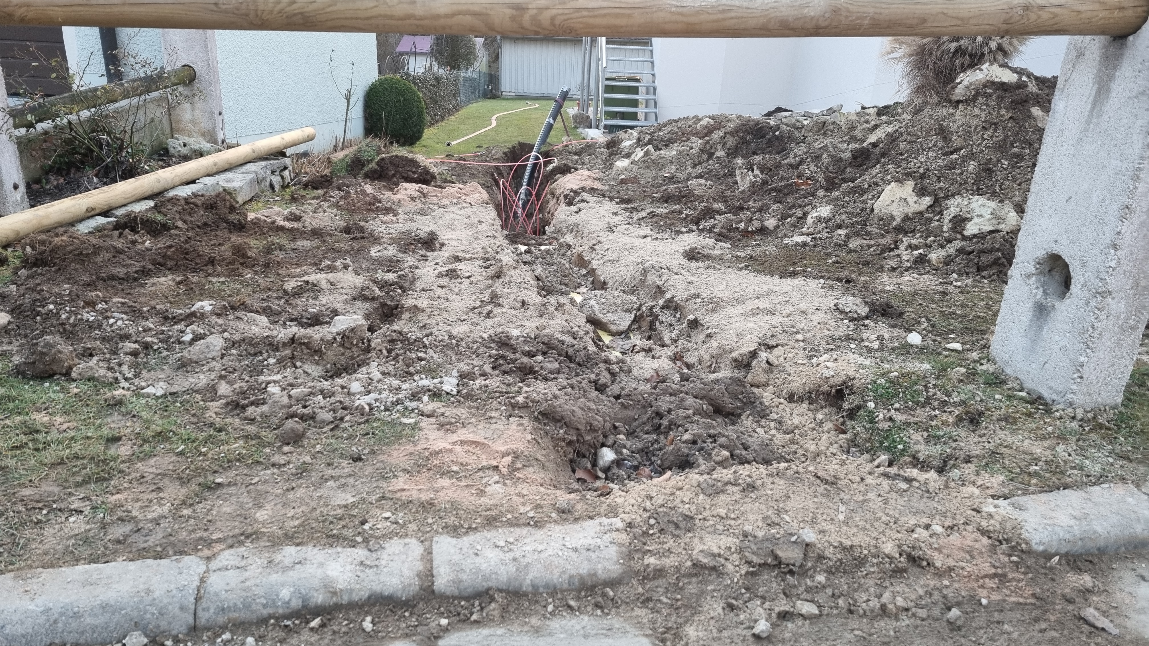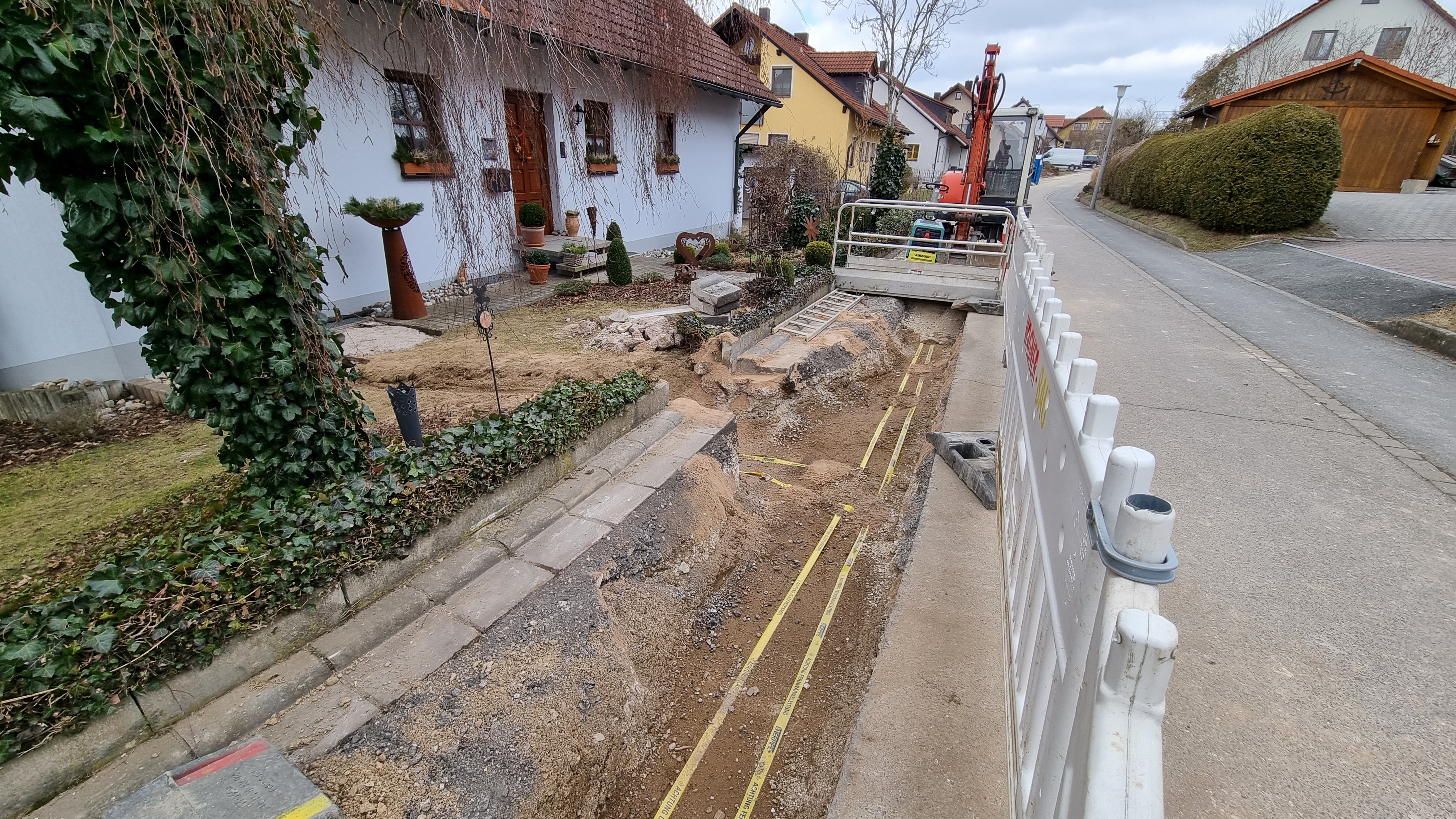 Nachdem bereits im vergangenen Jahr die Öffnung der Asphaltdecke mittels fräsen durchgeführt wurde, ging es im Februar mit den eigentlichen Tiefbau- und Verlegearbeiten los. Nach kleineren Startschwierigkeiten bei der Abstimmung der Arbeitsumfänge in den Privatgrundstücken der Genossen, verliefen die Arbeiten wie geplant und die Kommunikation zwischen Genossenschaft, ausführenden Bauunternehmen und Anschlussnehmern lief und läuft reibungslos.