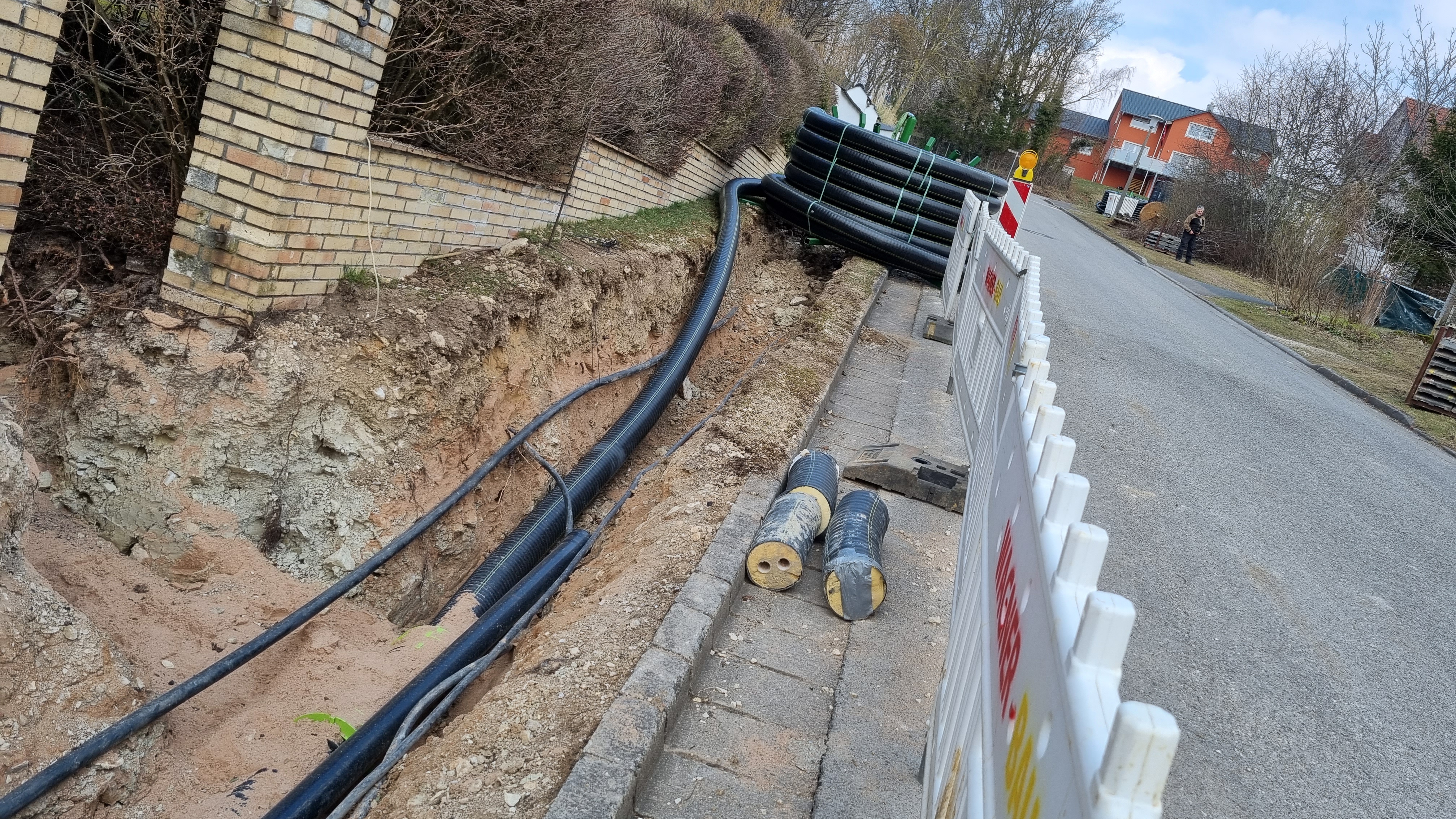 Momentan ist der Graben nur mit einer groben Asphaltschicht verschlossen, die finale Oberfläche wird dann gesammelt zu einem späteren Zeitpunkt hergestellt.Die Arbeiten werden nun in der Lindenstraße, am Hohenstein und der Ringstraße fortgesetzt.