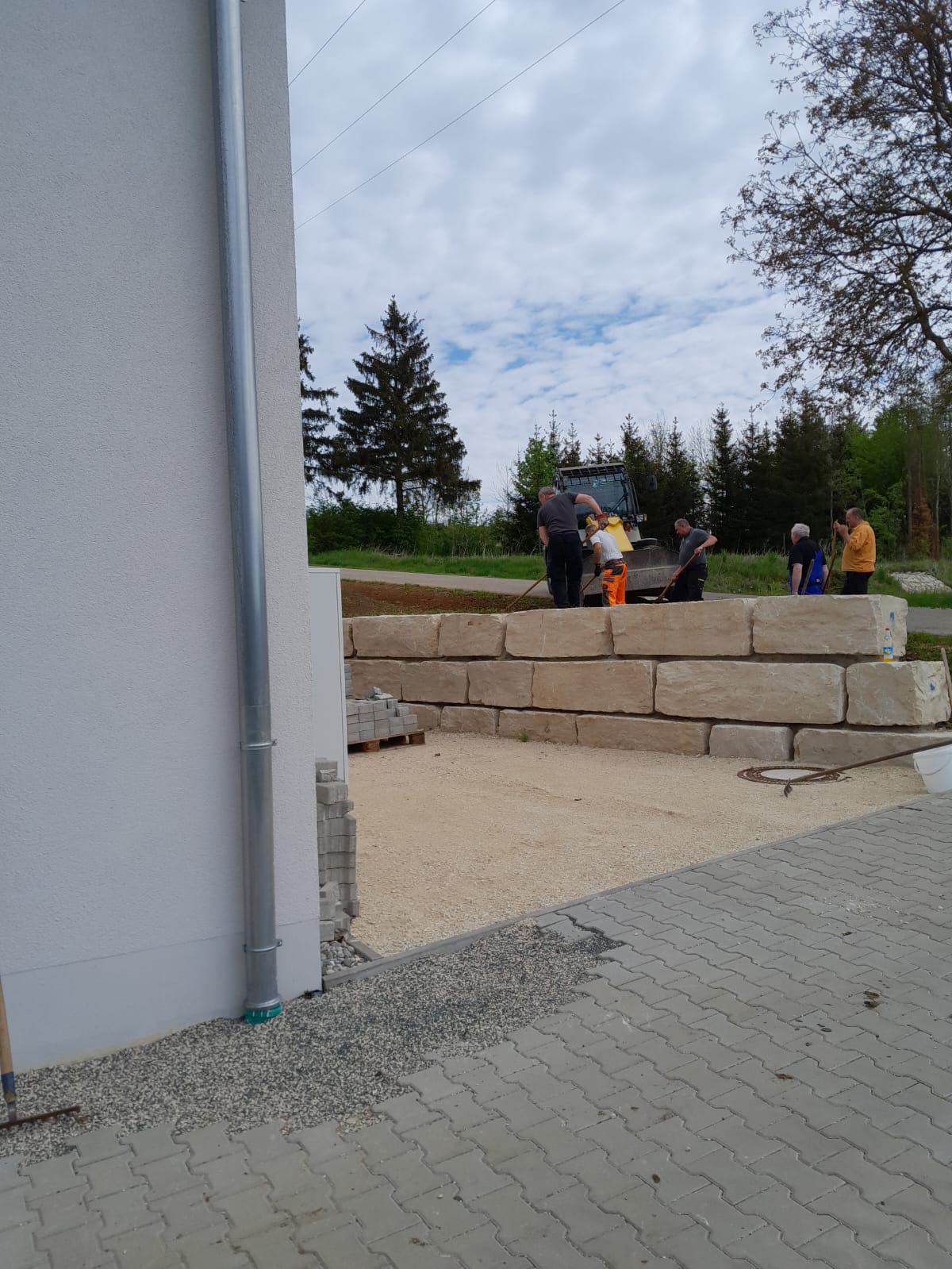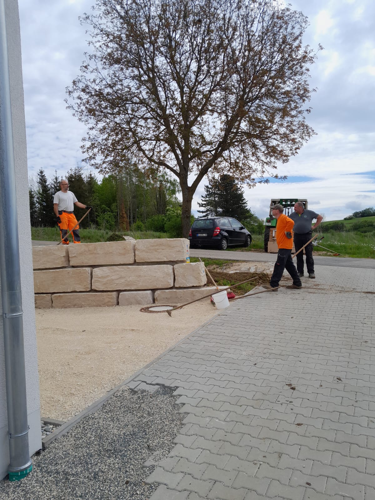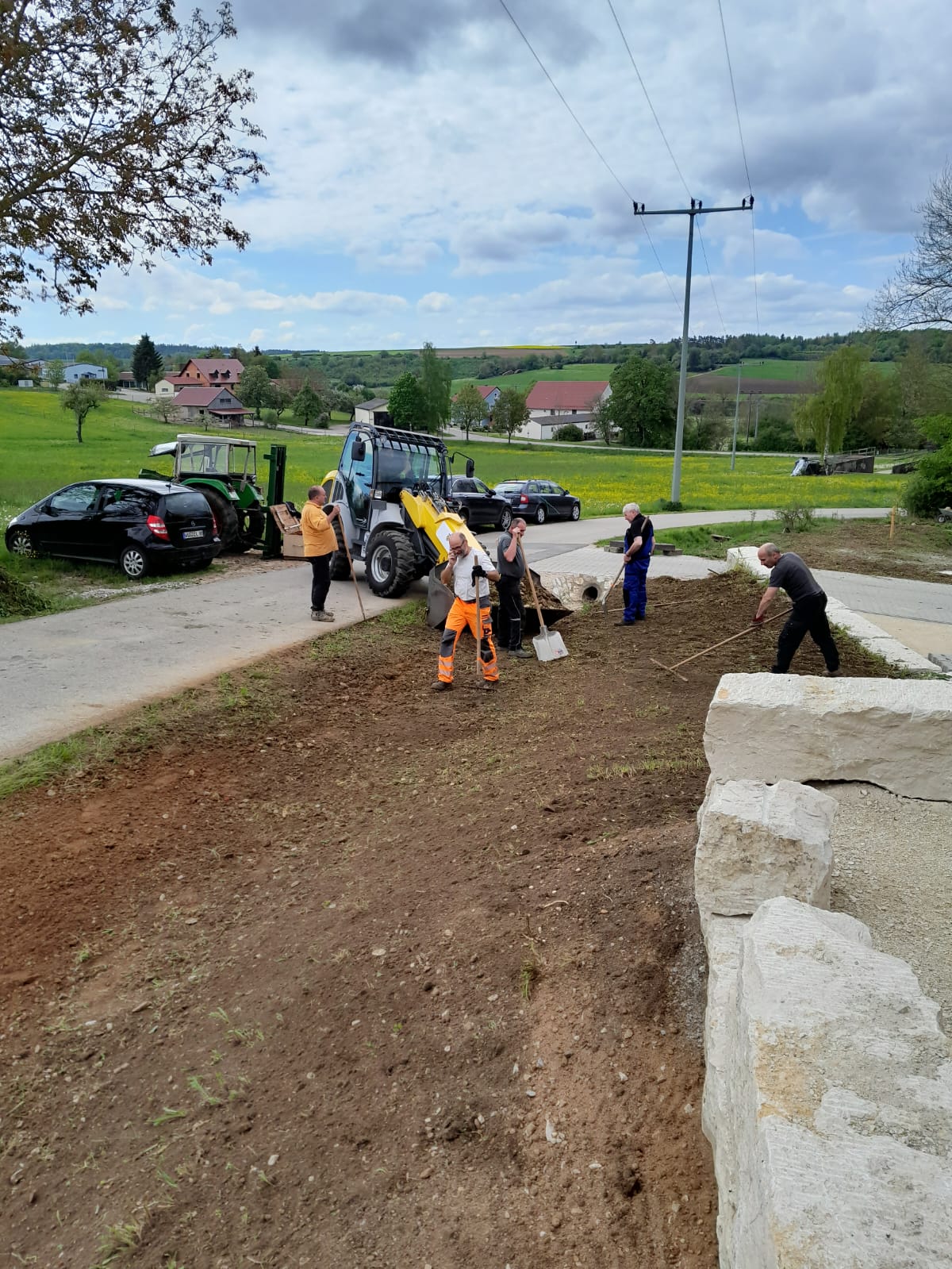 Neben der Pflanzung verschiedener Bäume wurde auch das Abklauben von Steinen, das Lockern des Bodens mittels einer Gartenfräse und die Ansaat einer Rasen- / Wiesenmischung erledigt. In einem zweiten Schritt sollen im Herbst noch mehrere Heckenabschnitte rund um das Grundstück angelegt werden.