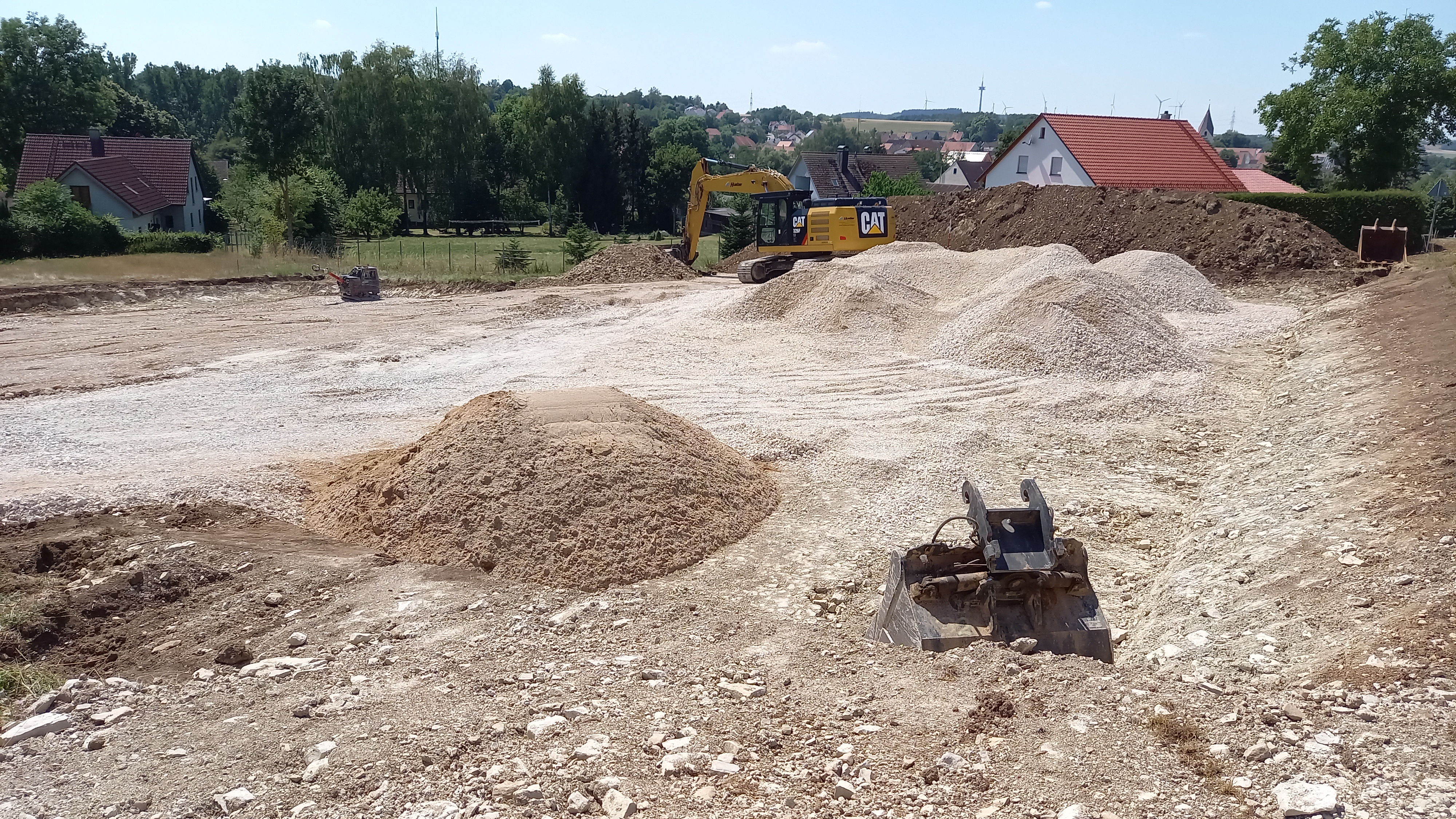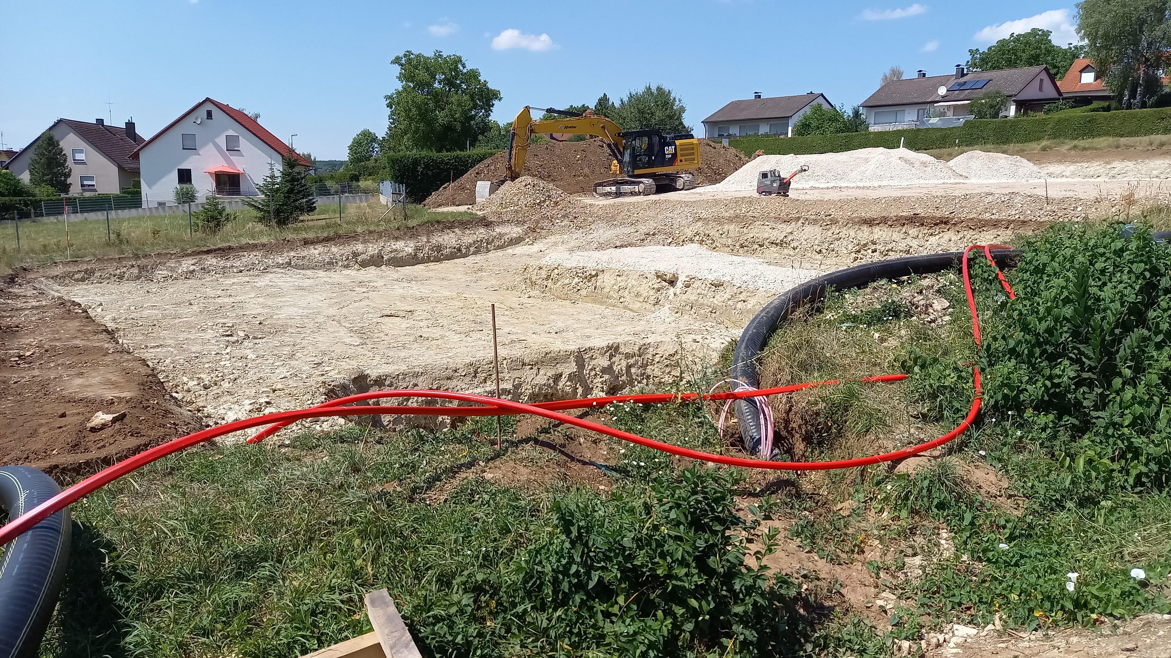 Am 29.07.2022 fand der offizielle Spatenstich für unser Heizhaus statt. Bereits zuvor wurde mit den Aushub- und Planierarbeiten begonnen, so dass es nach unserem Spatenstich direkt mit den Betonarbeiten weiter gehen kann.