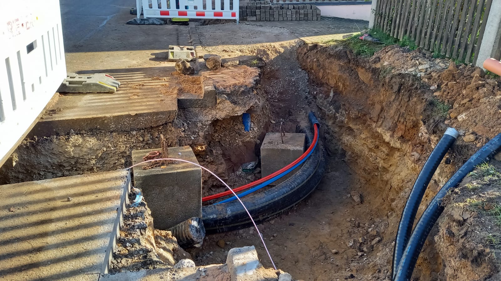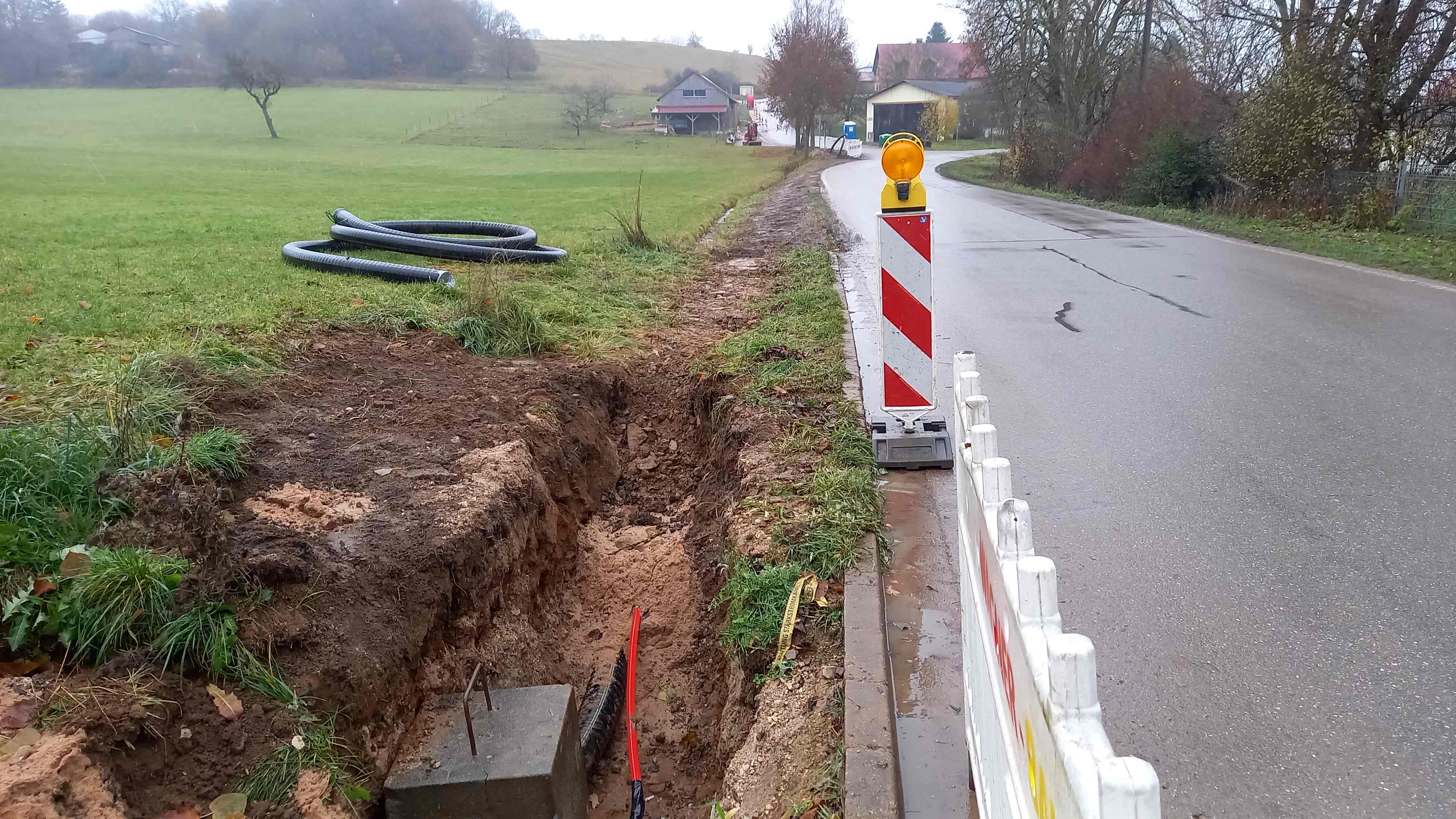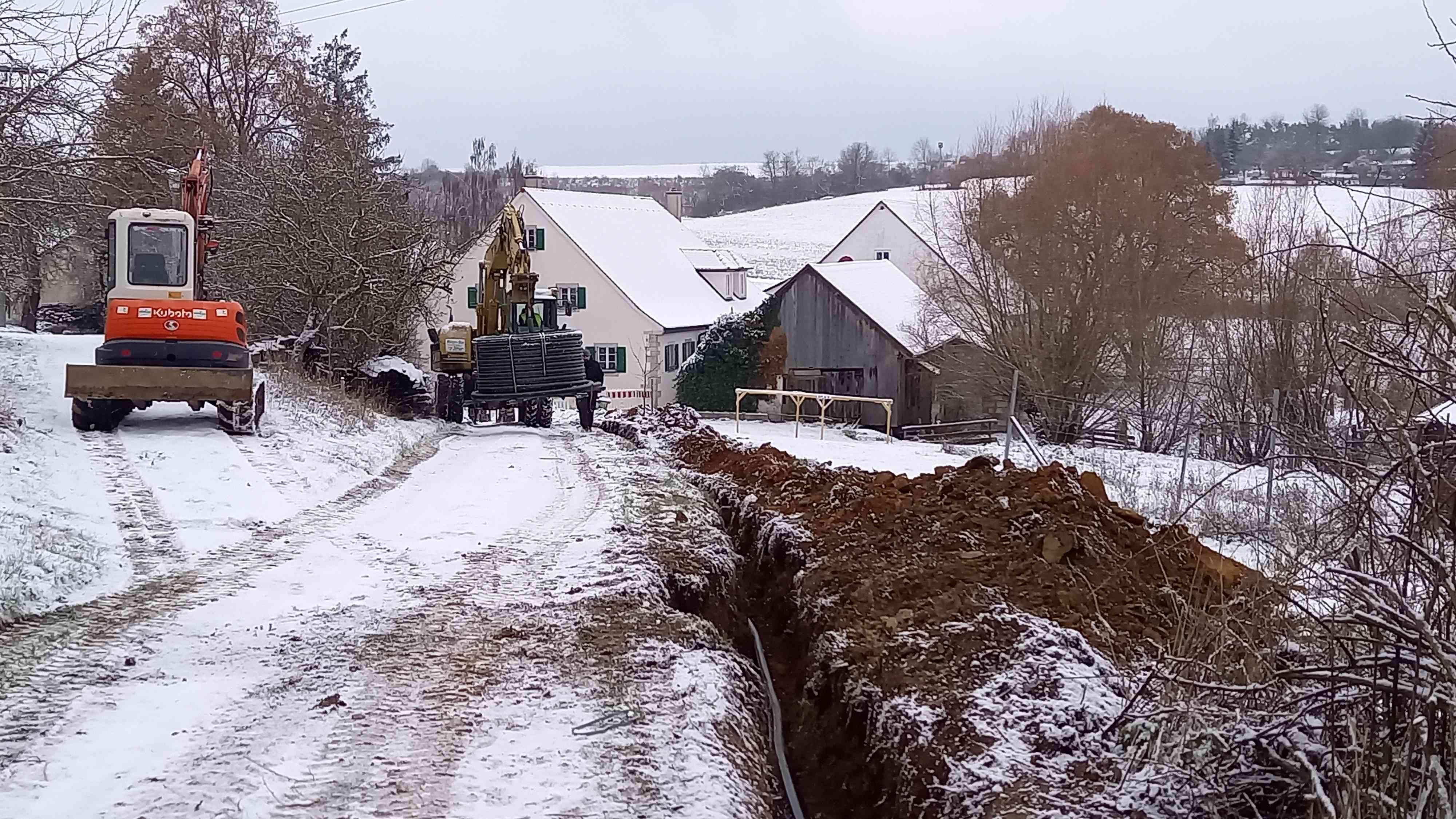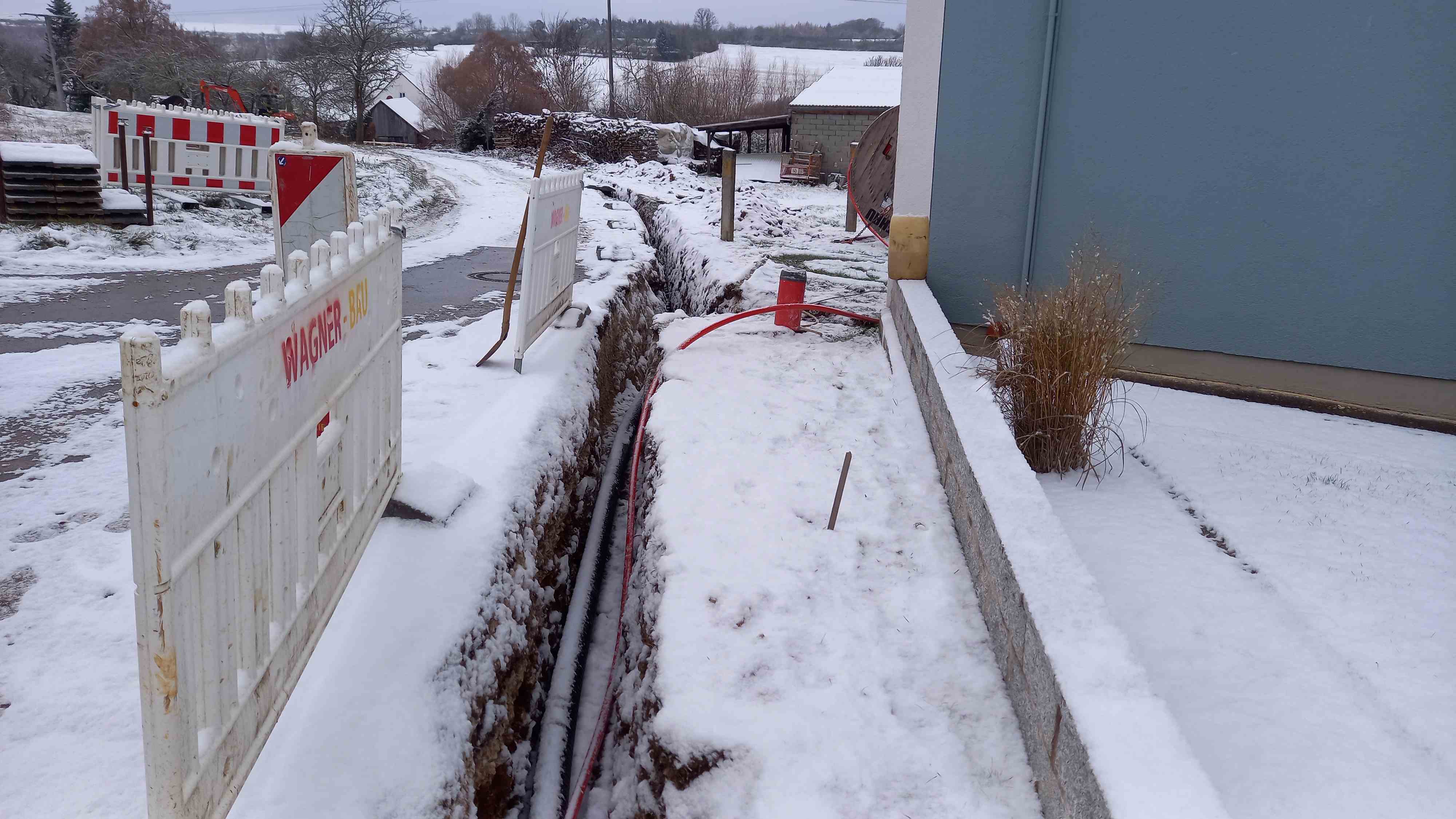 Im Hauptort konnte der erste Bauabschnitt im Bereich des Galgen- und Klingenbergs, sowie am Hohenstein, in der Linden- und Ringstraße und am Schwabenweiher bereits abgeschlossen werden. Im Anschluss fiel Anfang August der Startschuss im Bauabschnitt zwei, wo mit der Lohgasse begonnen wurde. Parallel dazu haben wir einer Reihe von Spülbohrungen durchgeführt, wo auch manche Überraschungen zu Tage traten. Bei allen Tiefbauabschnitten haben wir immer wieder Bekanntschaft mit unserem steinigen Juraboden machen müssen. Mit den in der letzten Woche bei winterlicher Witterung abgeschlossenen Arbeiten in der Gersdorfer- und Wengener Straße geht beim Tief- und Rohrleitungsbau ein ereignisreiches Jahr zu Ende.