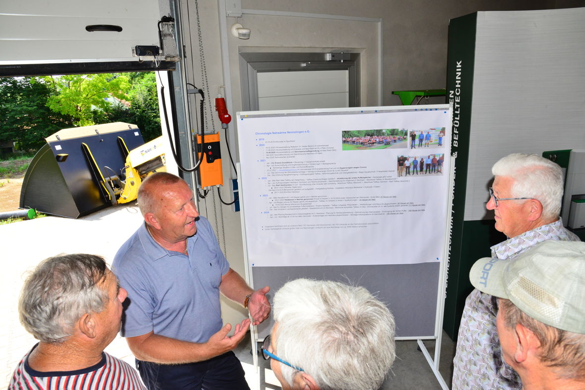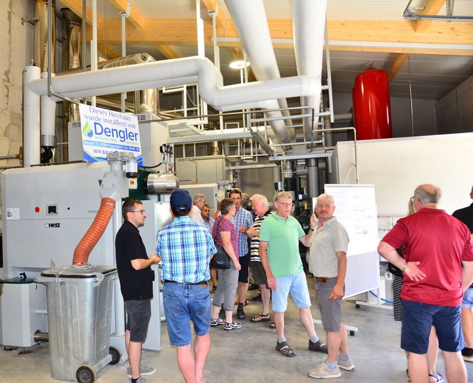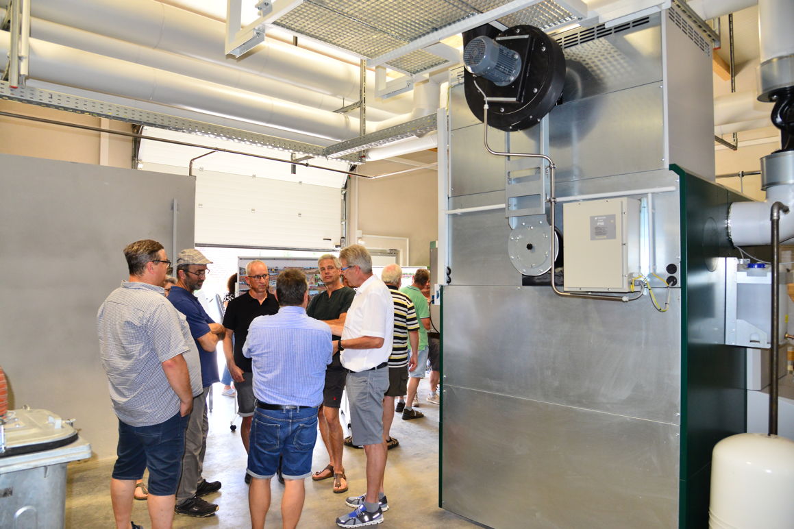 Nach dem Mittagessen vom Grill ging es dann mit den Heizhausführungen los, wo unsere Vorstandschaft und der Aufsichtsrat ihr Fachwissen unter Beweis stellen konnten . Es wurden dabei neben der Brennertechnik auch unsere Steuerungssoftware und die hydraulischen Anlagen erklärt. Auch einige Vertreter der am Bau beteiligten Fachfirmen standen vor Ort für Fragen parat.