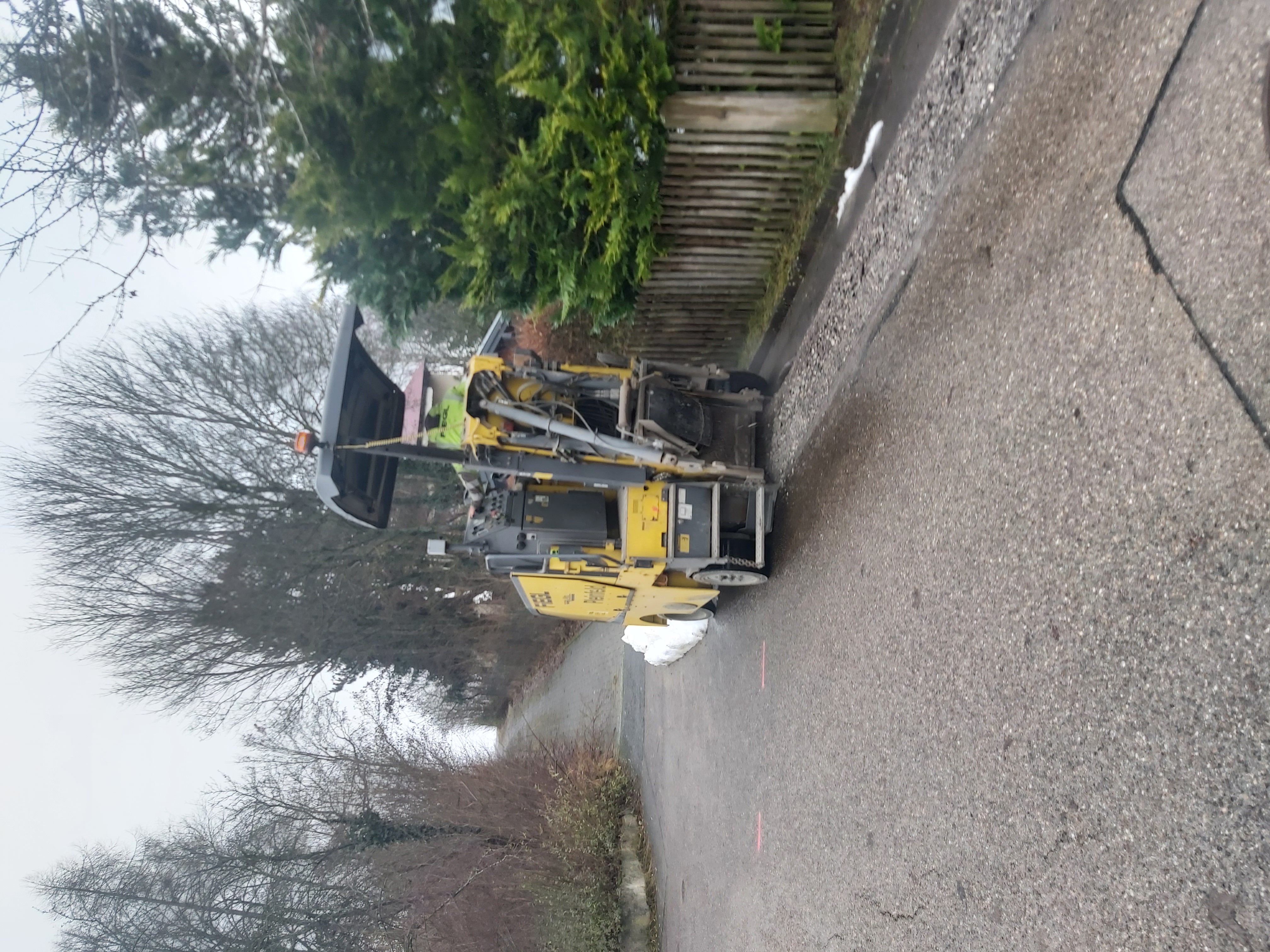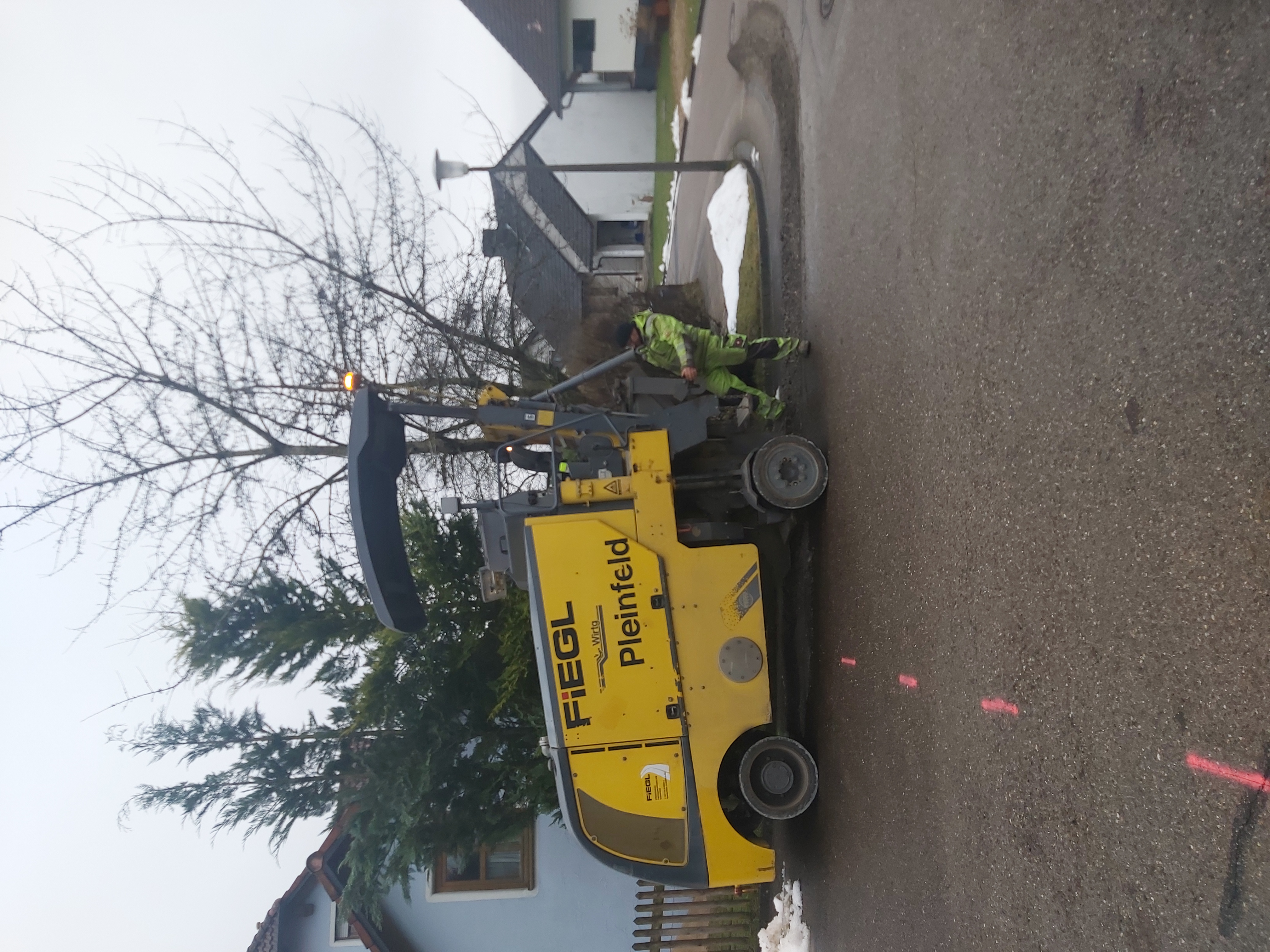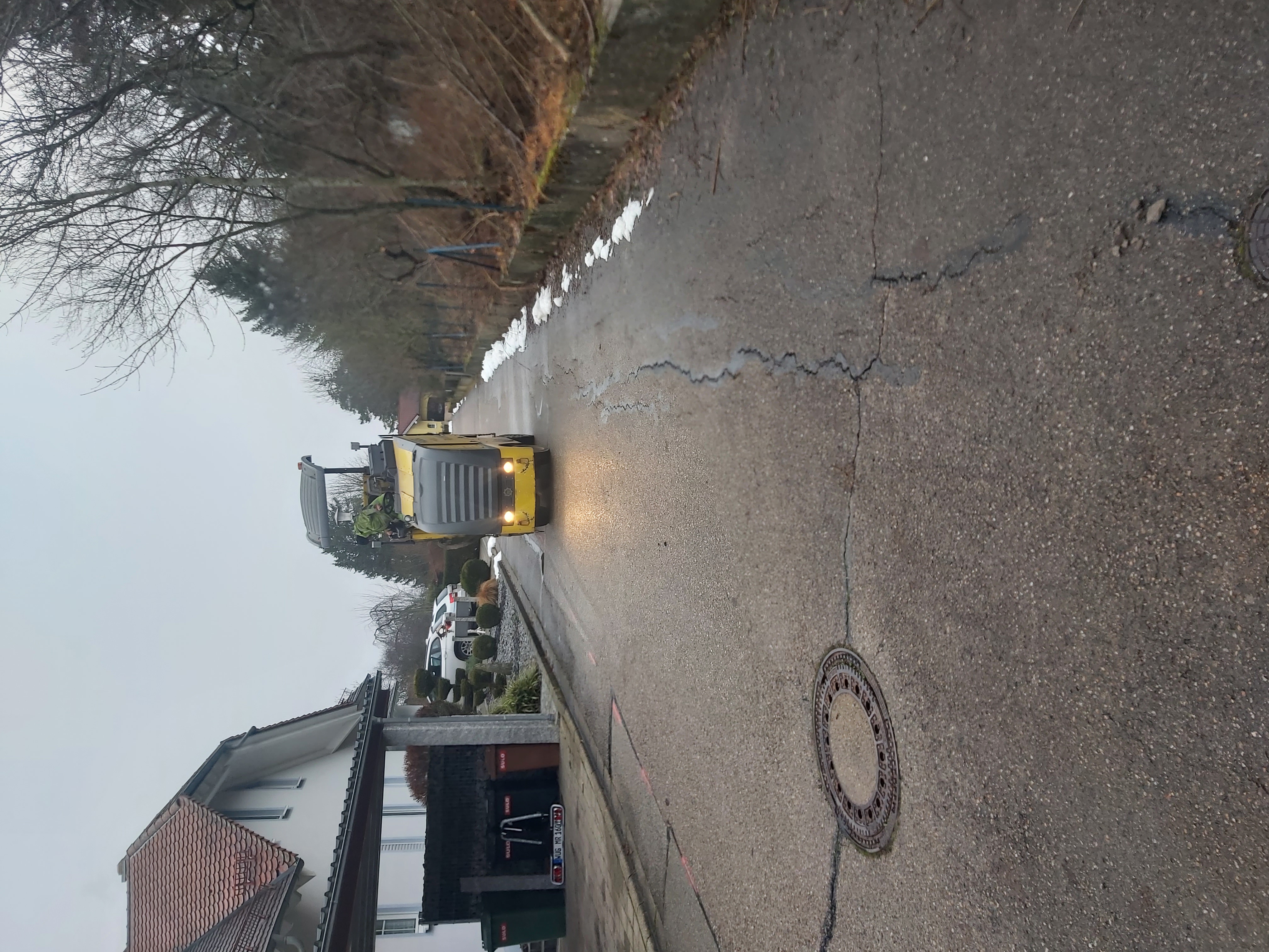 Am 16.12. wurde mit den Bauarbeiten des Netzabschnittes 1 am Galgenberg begonnen. Anders als bei der Begehung geplant, hatte sich der Baustart nach mehreren Verschiebungen bei unserem Bauunternehmer erst für Januar 2022 angedeutet, jedoch hat es die letzten Tage erneut einige Änderungen gegeben. Somit konnten die Arbeiten nun doch noch im alten Jahr beginnen. Im ersten Schritt wurde dabei der Straßenbelag mittels einer Asphaltfräse geöffnet und das gelöste Material danach vorübergehend erneut verdichtet. Notwendig wurde diese Vorgehensweise, da die Asphaltfräse kurz nach dem Einsatz bei uns bis ins Frühjahr hinein stillgelegt werden soll, wodurch sich unser Projekt weiter verzögert hätte. Durch den vorgezogenen Baustart, können die weiteren Arbeiten, für die keine Asphaltfräse notwendig ist, fortgesetzt werden sobald es die Witterung zulässt.