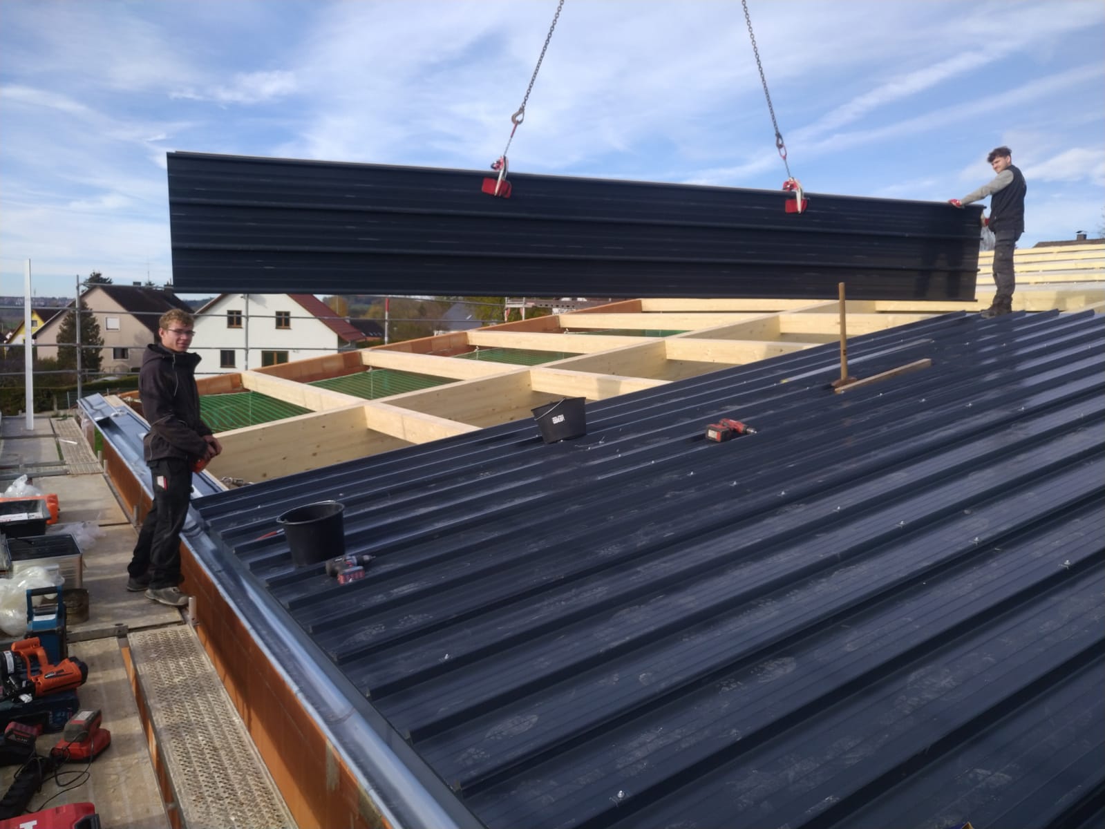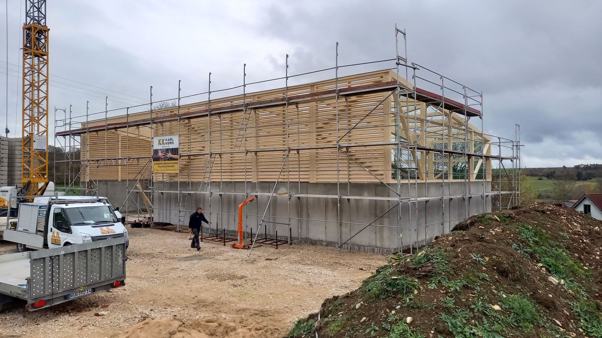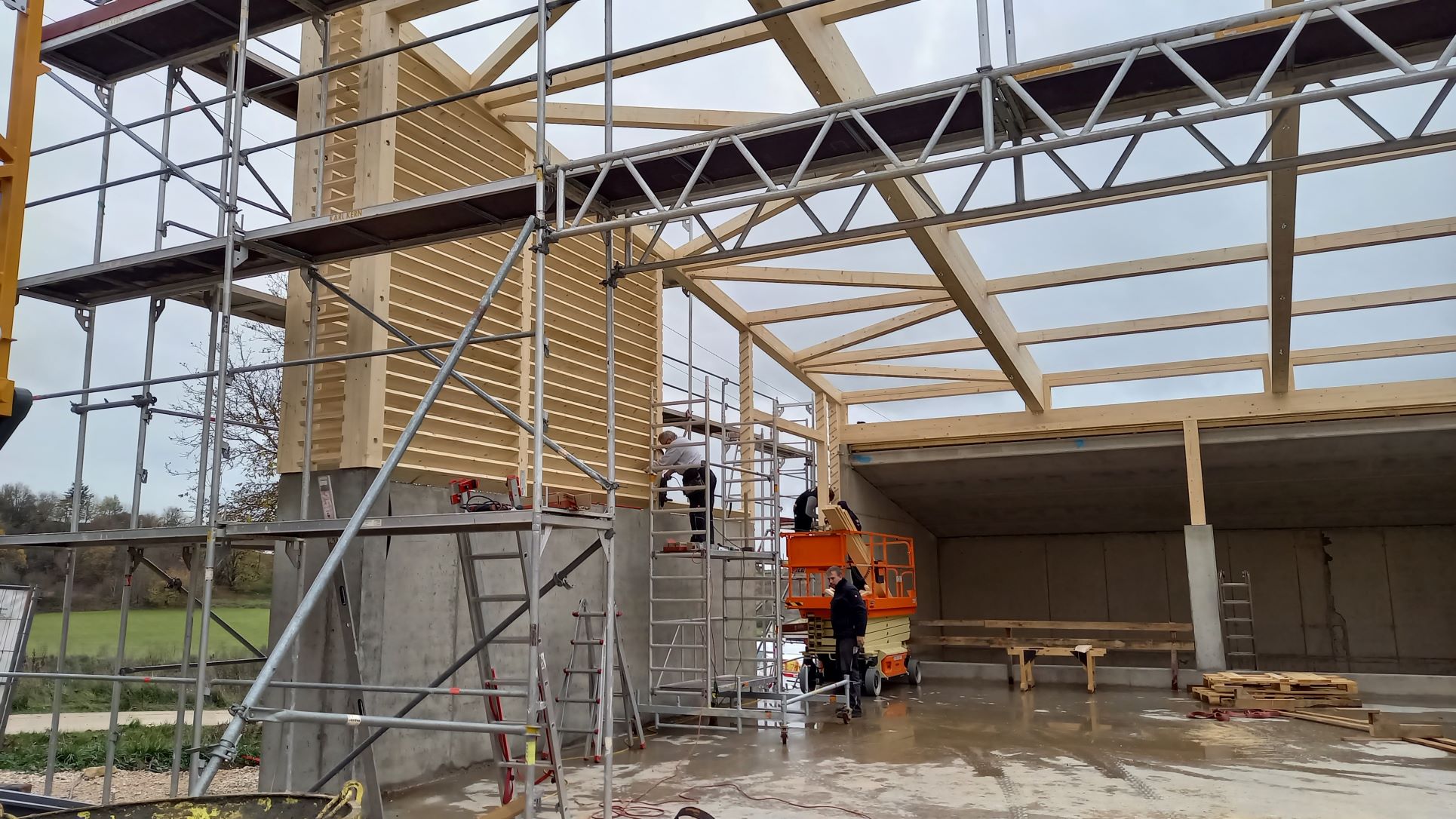 Im Heizhaus geht es ab nächster Woche mit der Installation der Heizhaushydraulik durch die Fa. Dengler weiter, bevor dann in KW 50 der Kamin eingebaut wird.