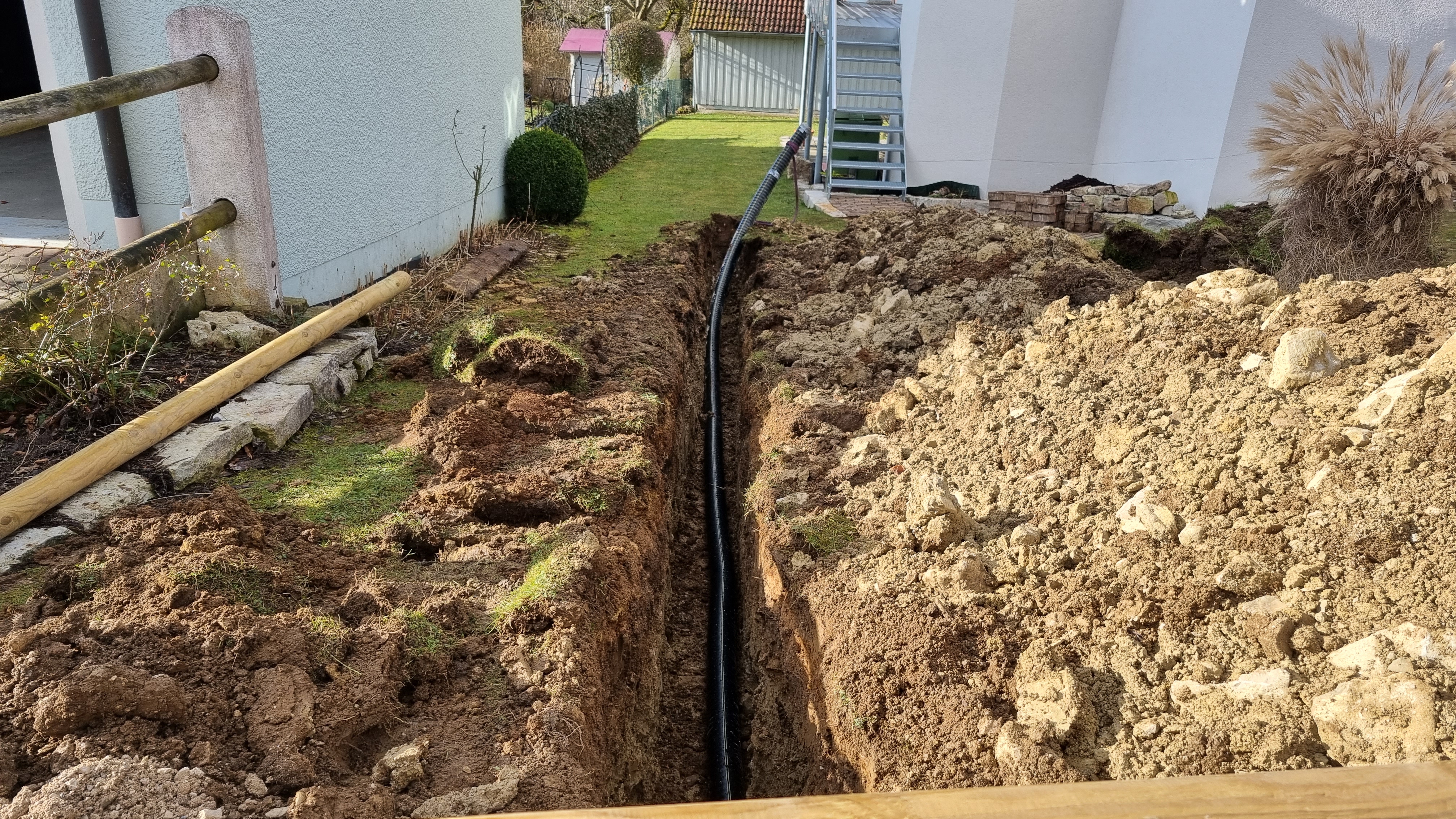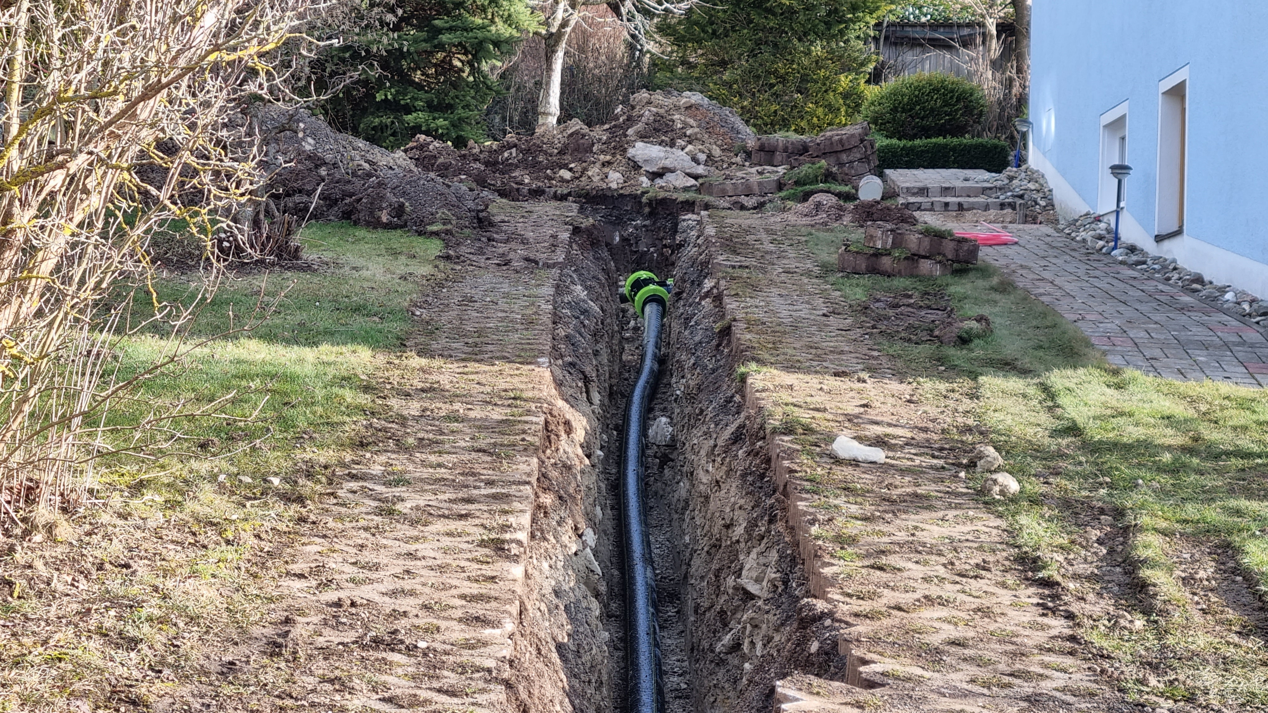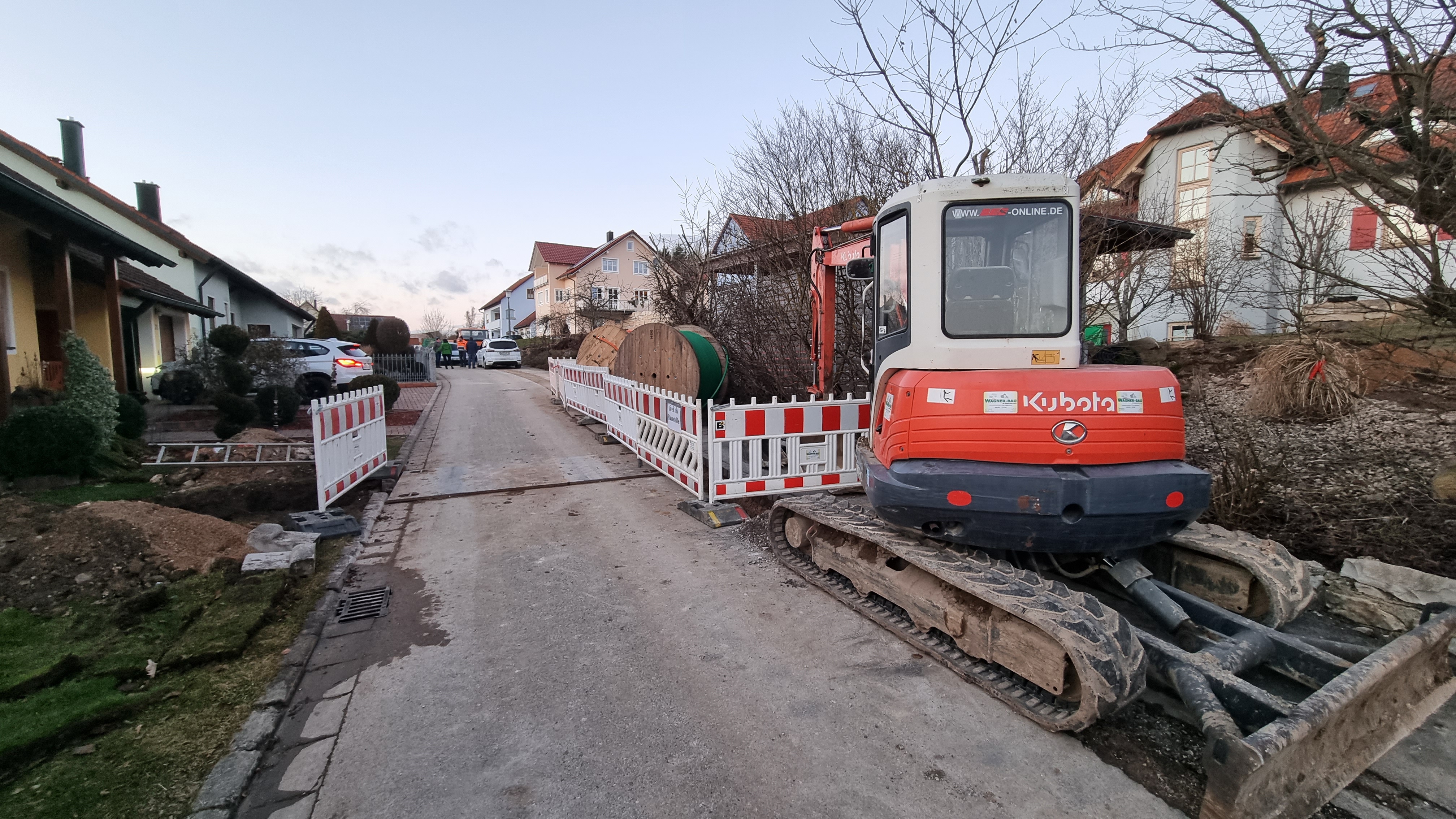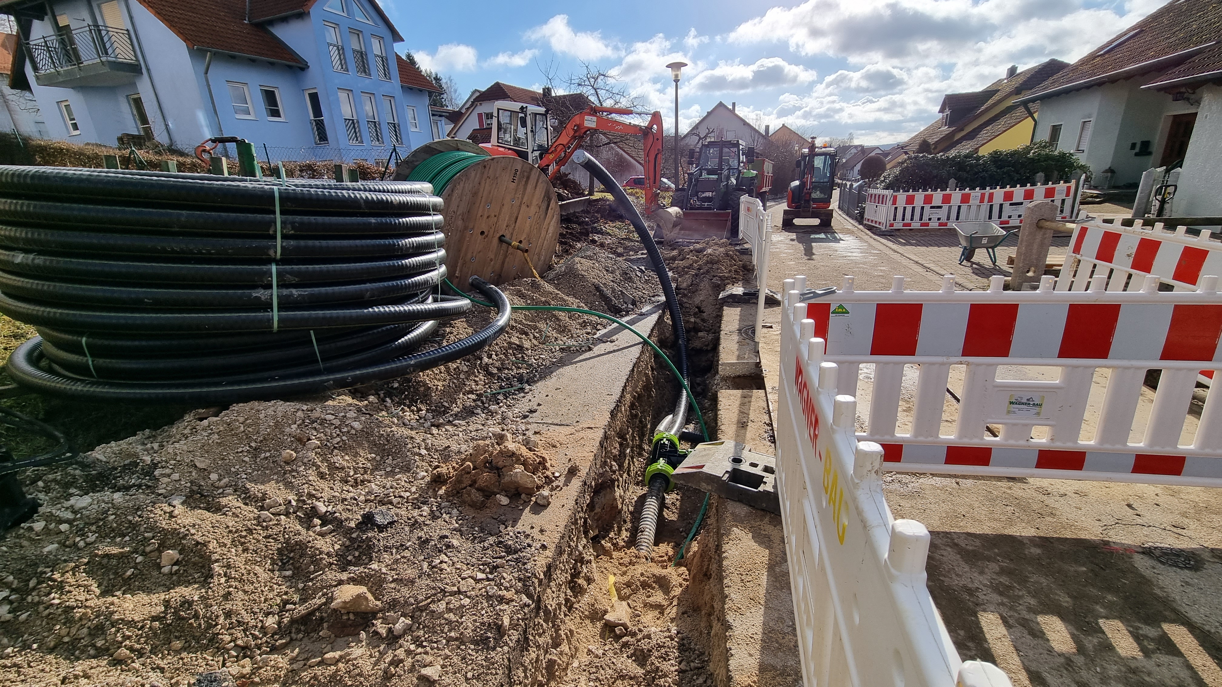 Nachdem bereits im vergangenen Jahr die Öffnung der Asphaltdecke mittels fräsen durchgeführt wurde, ging es im Februar mit den eigentlichen Tiefbau- und Verlegearbeiten los. Nach kleineren Startschwierigkeiten bei der Abstimmung der Arbeitsumfänge in den Privatgrundstücken der Genossen, verliefen die Arbeiten wie geplant und die Kommunikation zwischen Genossenschaft, ausführenden Bauunternehmen und Anschlussnehmern lief und läuft reibungslos.