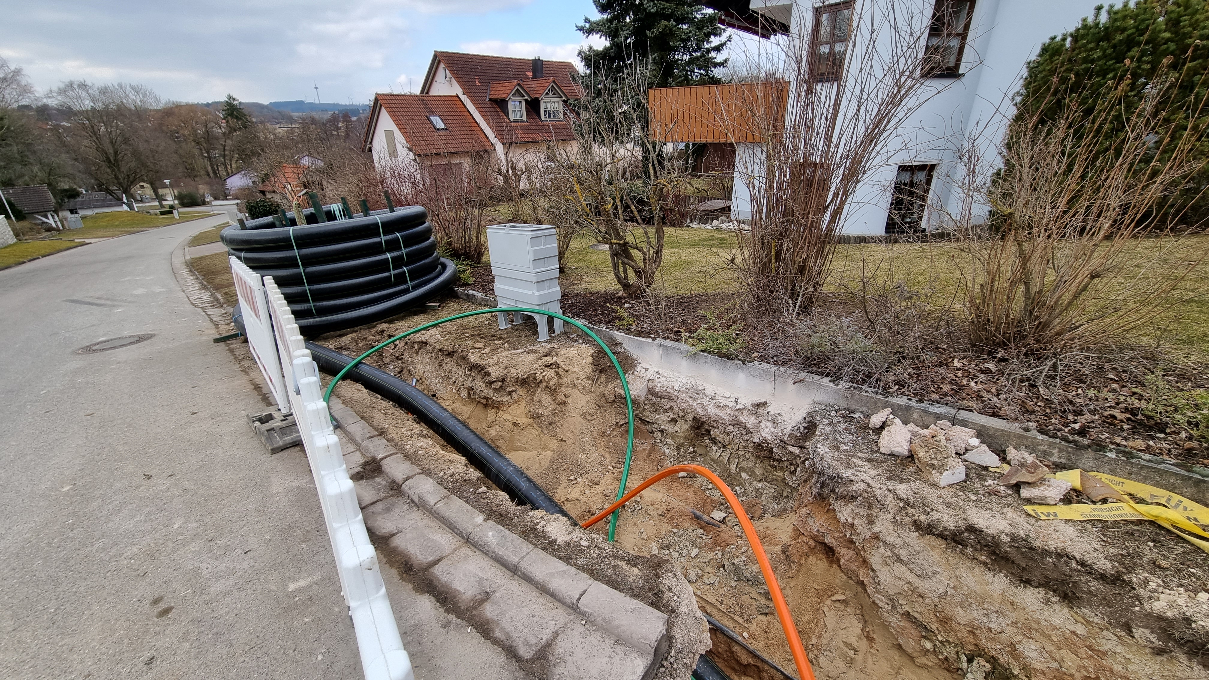 Nach zwei Monaten Bauzeit freuen wir uns sehr über den Abschluss des ersten Teilabschnittes im Bauabschnitt 1. Insgesamt wurden im Bereich Galgenberg und Klingenberg 34 Hausanschlüsse gesetzt und ca. 1,5km Leitung verlegt.