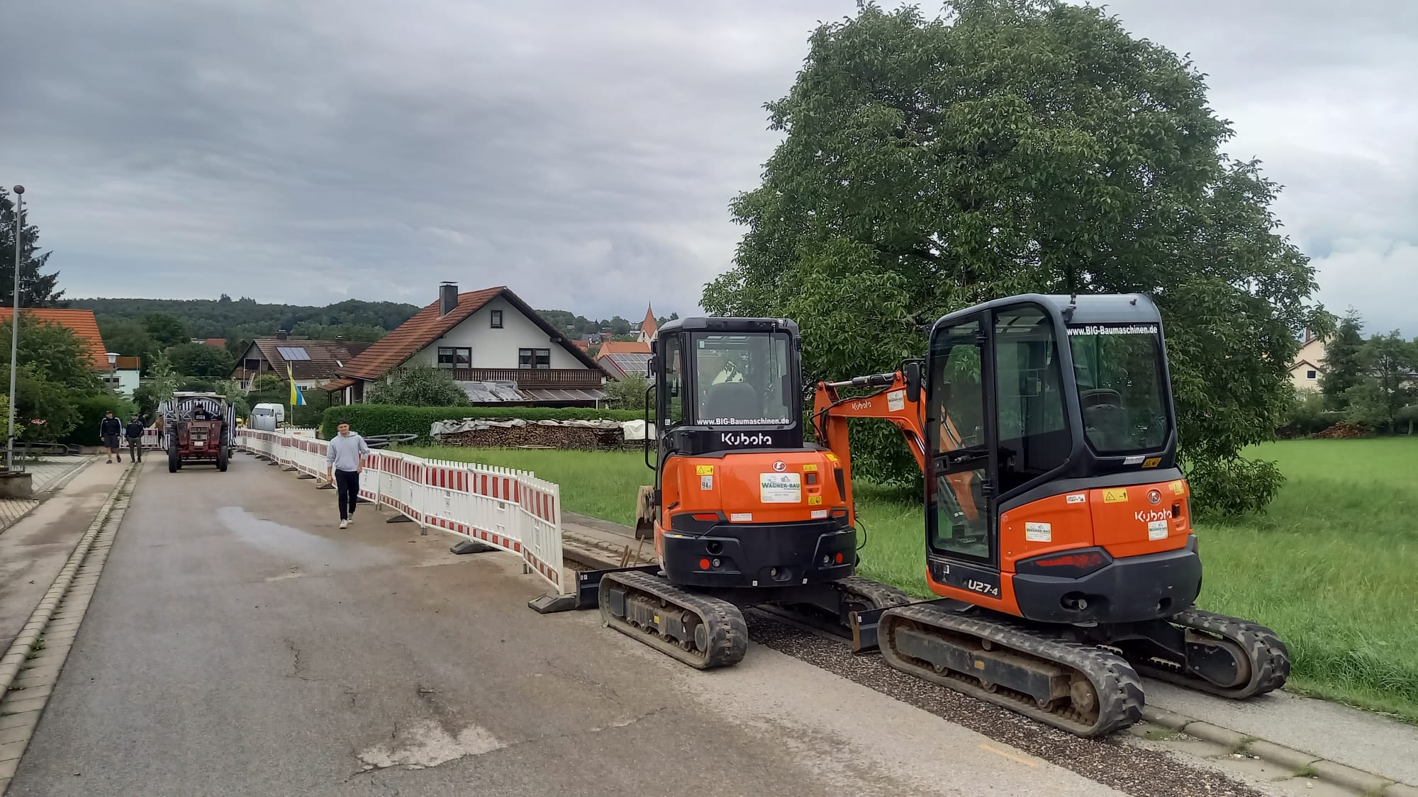 Die Arbeiten hier liefen gut, vor allem weil der Untergrund nicht so steinig und schwierig war wie an vielen anderen Stellen in Nennslingen. Dieser Umstand beschleunigte den Fortschritt enorm, sodass an der Kirchweih bereits ein Teil der Mackstraße erledigt war und der Kirchweihzug mit den Kirchweihbären sich problemlos durch die Baustellen schlängeln konnte.