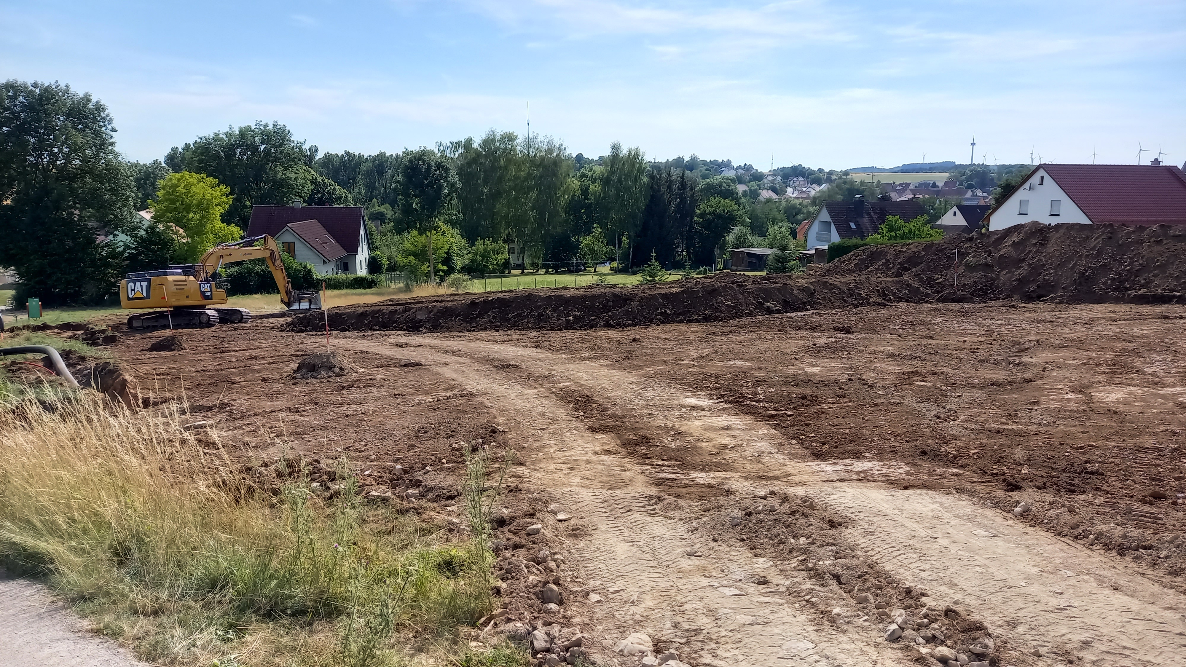 Am 29.07.2022 fand der offizielle Spatenstich für unser Heizhaus statt. Bereits zuvor wurde mit den Aushub- und Planierarbeiten begonnen, so dass es nach unserem Spatenstich direkt mit den Betonarbeiten weiter gehen kann.