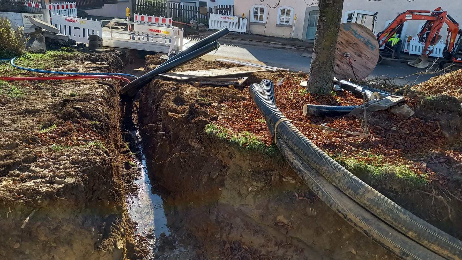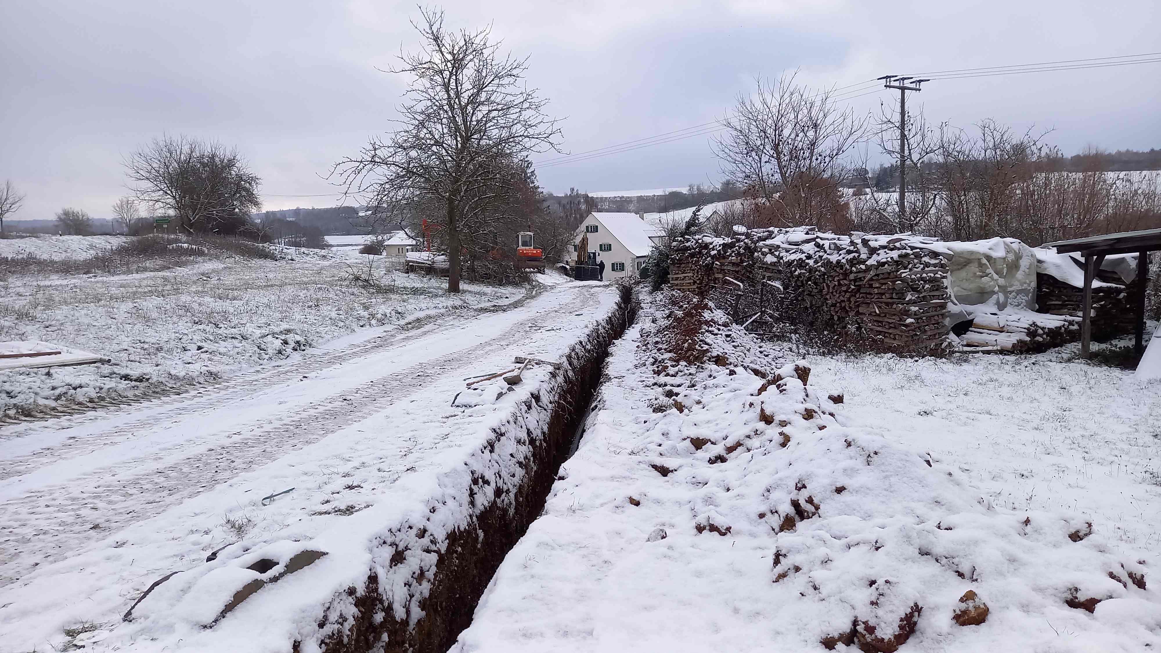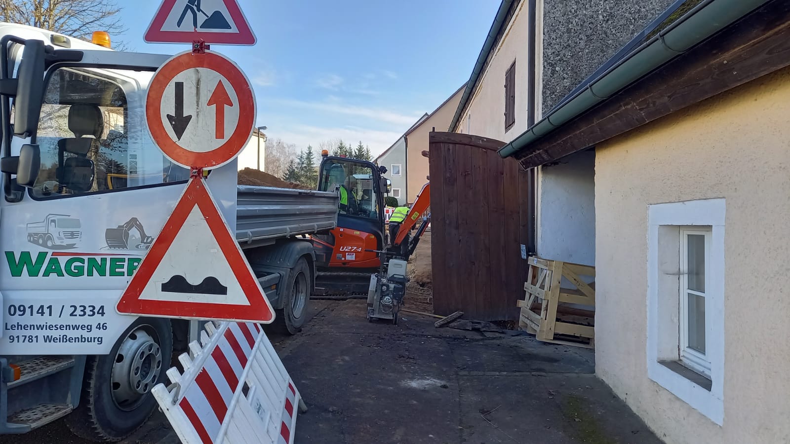 Im Hauptort konnte der erste Bauabschnitt im Bereich des Galgen- und Klingenbergs, sowie am Hohenstein, in der Linden- und Ringstraße und am Schwabenweiher bereits abgeschlossen werden. Im Anschluss fiel Anfang August der Startschuss im Bauabschnitt zwei, wo mit der Lohgasse begonnen wurde. Parallel dazu haben wir einer Reihe von Spülbohrungen durchgeführt, wo auch manche Überraschungen zu Tage traten. Bei allen Tiefbauabschnitten haben wir immer wieder Bekanntschaft mit unserem steinigen Juraboden machen müssen. Mit den in der letzten Woche bei winterlicher Witterung abgeschlossenen Arbeiten in der Gersdorfer- und Wengener Straße geht beim Tief- und Rohrleitungsbau ein ereignisreiches Jahr zu Ende.