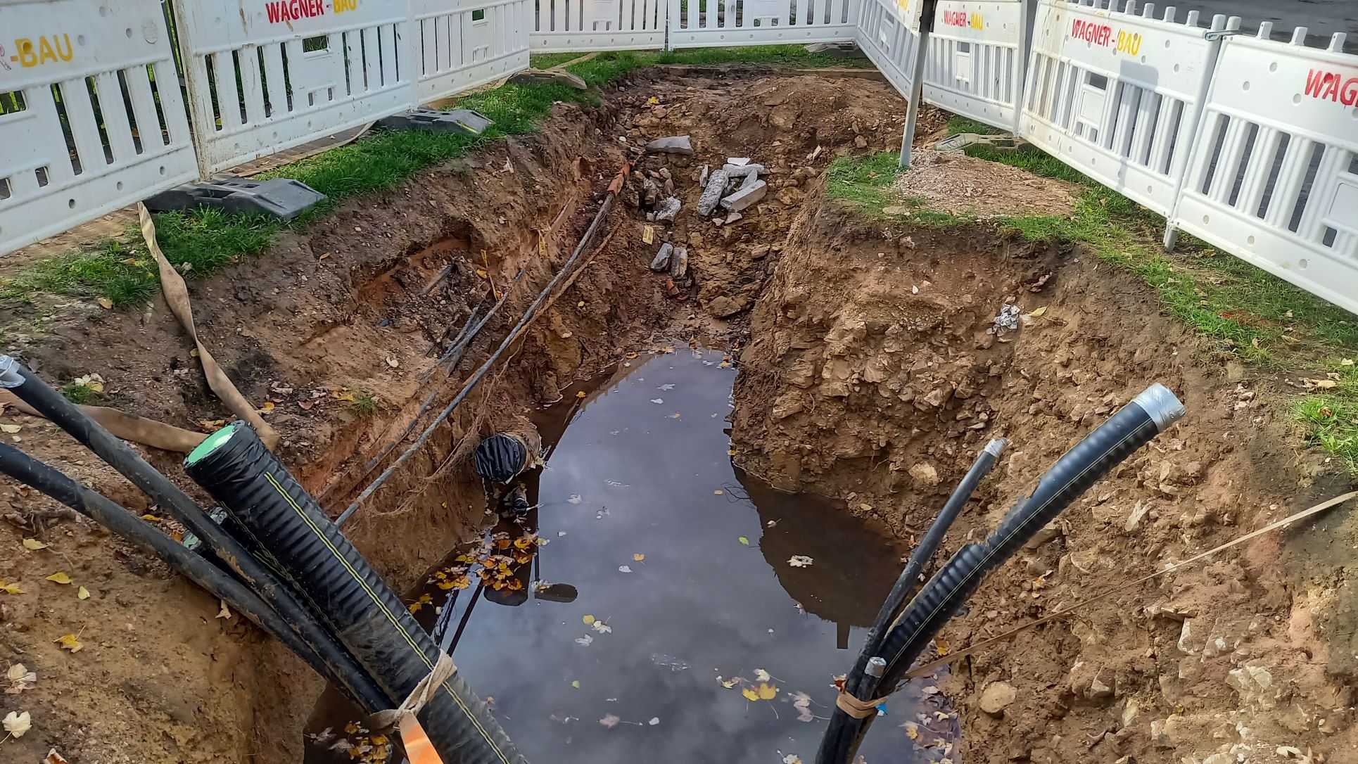 Im zweiten Bauabschnitt haben wir uns nach Abstimmungen mit unseren Partnern von der Fa. Enerpipe und der Fa. Wagner an einigen Stellen für Spülbohrungen entschieden. Begonnen wurde mit diesen Mitte September im Bereich der Gersdorfer-/Wengener Straße.