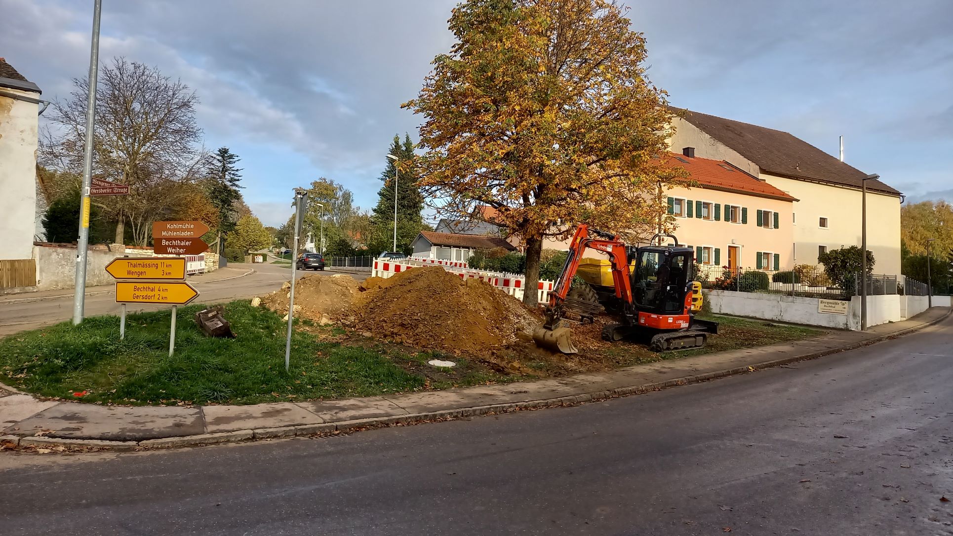 Für diese Spülbohrungen hat die Fa. Wagner sich professionelle Unterstützung der Fa. Bauer aus Runding geholt. Für eine Spülbohrung muss immer jeweils eine Startgrube und eine Endgrube ausgehoben werden, bevor dann der eigentliche Bohrprozess starten kann.